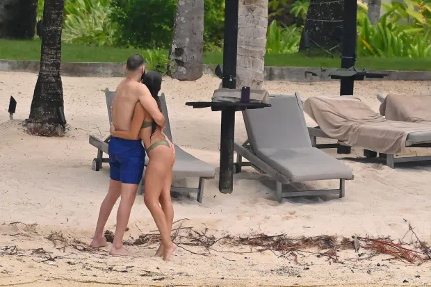 Benzema, sporting a pair of vibrant blue swimming trunks, and Chloe, elegantly clad in a green bikini, were spotted soaking up the sunshine and sharing moments of relaxation on the beach.