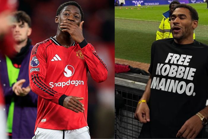 Jordan Mainoo-Hames, brother of Manchester United midfielder Kobbie Mainoo and a former Love Island star, made a public statement during the club's 4-4 draw with Bournemouth by wearing a T-shirt that read "Free Kobbie Mainoo."