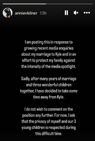 "Sadly, after many years of marriage and three wonderful children together; I have decided to take some time away from Kyle.