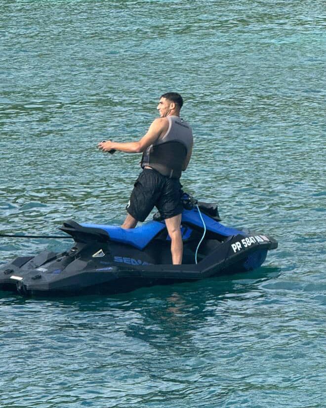Photos that emerged on social media from their respective fan pages showed Mbappé, sporting vibrant pink shorts, looking relaxed onboard, while Hakimi, in black shorts, was later seen tearing up the ocean on a jet ski.