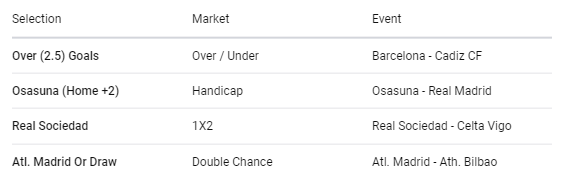 We have made available an accumulator of 4-odds from the LaLiga and hope for a green weekend.