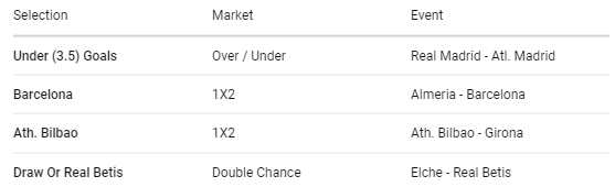 Our tickets include Real Betis, Real Madrid, Athletic Bilbao and Barcelona respectively.