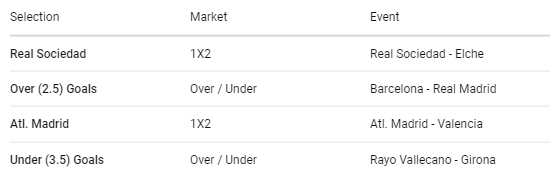 Our tickets include Atletico Madrid, Rayo Vallecano, Real Sociedad and Barcelona respectively.