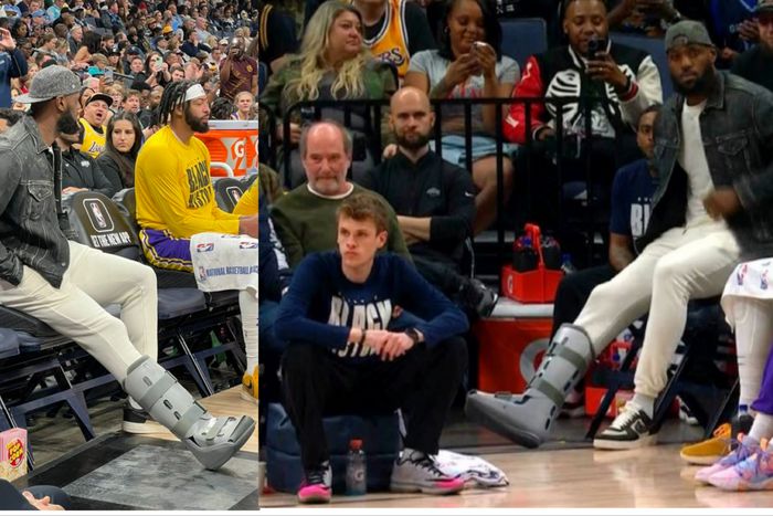 James was spotted in the Lakers' next game away against the Memphis Grizzlies wearing a protective boot.