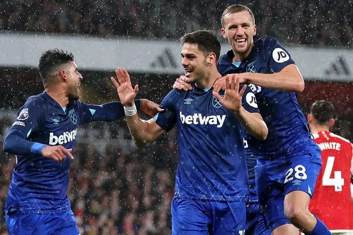 West Ham rose out the opening skirmishes and got a goal against a total run of play when, in the 13th minute, Tomas Soucek poked home from point blank range after Jarod Bowen controversially retrieved a ball that a lengthy VAR check allowed.