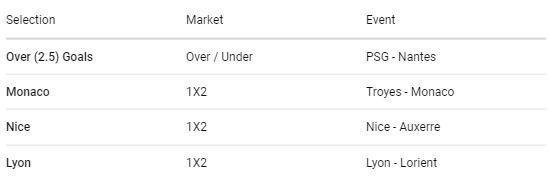 Our tickets include Nice, Lyon, Monaco and PSG respectively.