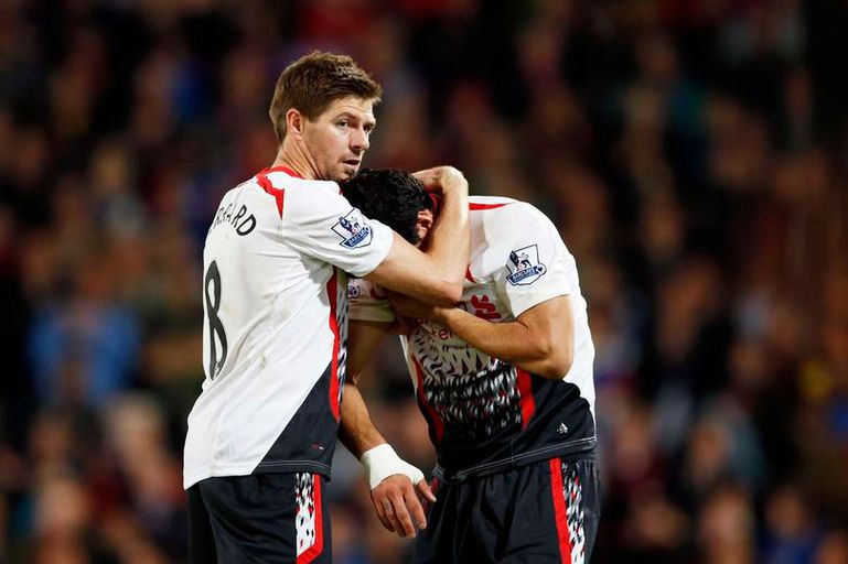Steven Gerrard tried to console Luis Suarez after Liverpool's 3-3 draw with Crystal Palace in 2014.