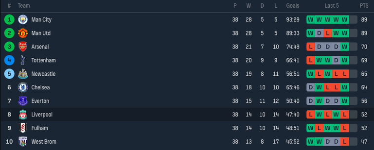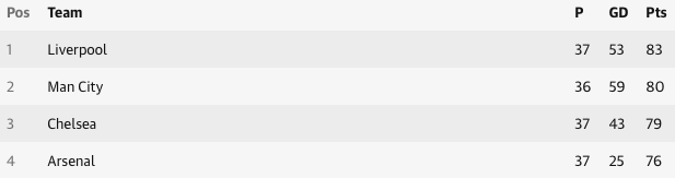 Liverpool ended the year on 84 points, two adrift of the Cityzens, whose superior goal difference meant the Reds pushed the panic button in the run-in.
