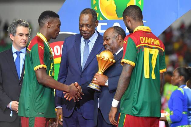 Issa Hayatou and Ali Bongo Ondimba presenting the AFCON trophy to Cameroon | Imago