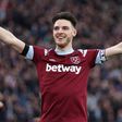 Declan Rice during a Premier league match between West Ham United and Aston Villa.