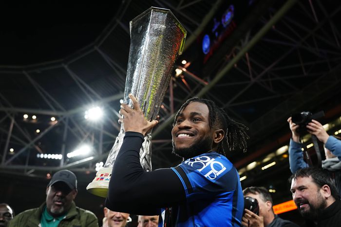 Ademola Lookman lifts the Europa League title after a historic display against Bayer Leverkusen.