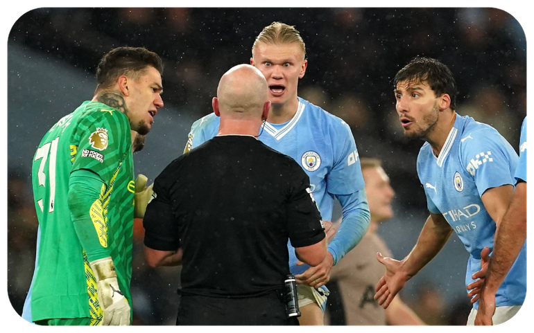 The incident occurred in the final stages of the game at the Etihad Stadium, where several City players, including an agitated Erling Haaland, confronted referee Simon Hooper.