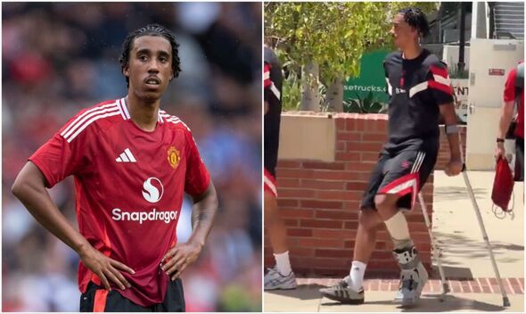 The 18-year-old was spotted wearing a protective boot and using crutches at United's training base in Los Angeles, sparking fears of a serious injury.