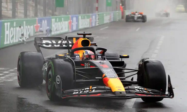 Red Bull’s Max Verstappen fended off stiff competition rom Aston Martin's Fernando Alonso on a wet day at the Monaco Grand Prix.