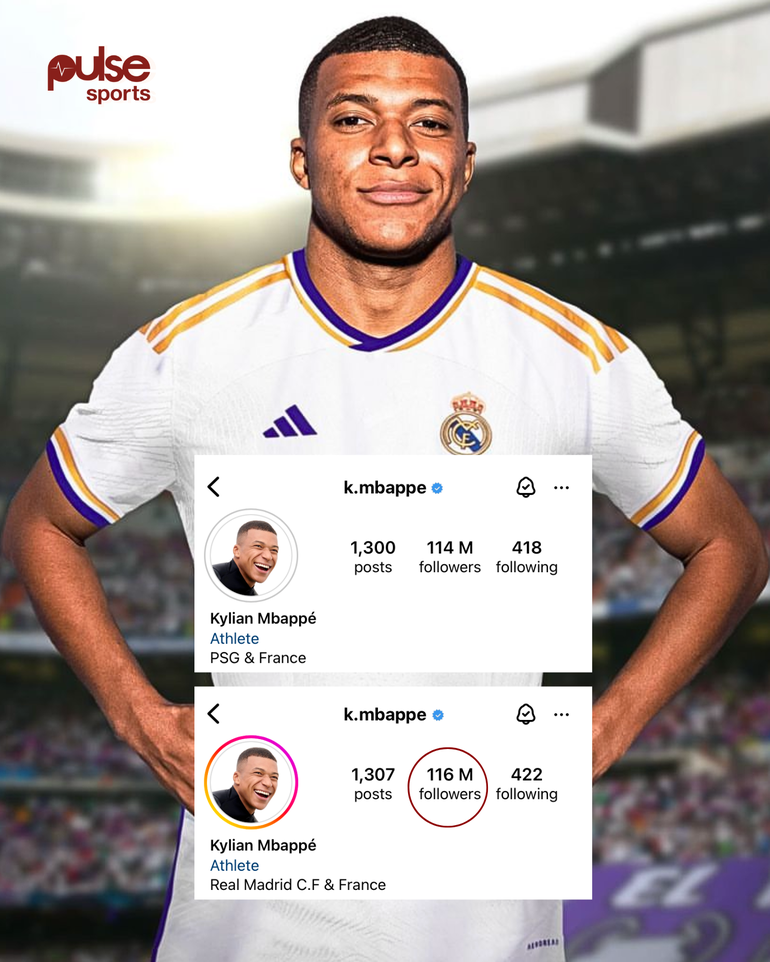 Pulse Sports reports that barely an hour after his official confirmation as Real Madrid’s latest signing, Mbappé saw a sporadic increase in his Instagram following.