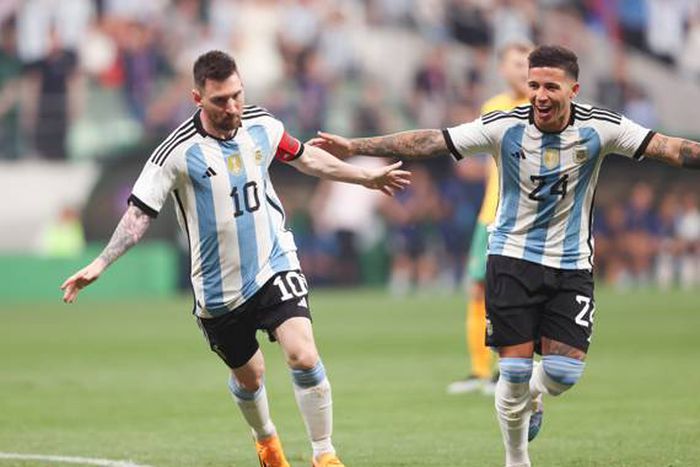 Argentina captain Lionel Messi showed that he has no plans of slowing down despite leaving Europe for the MLS, reaching a personal milestone as the World Champions cruised to a 2-0 friendly win over Australia