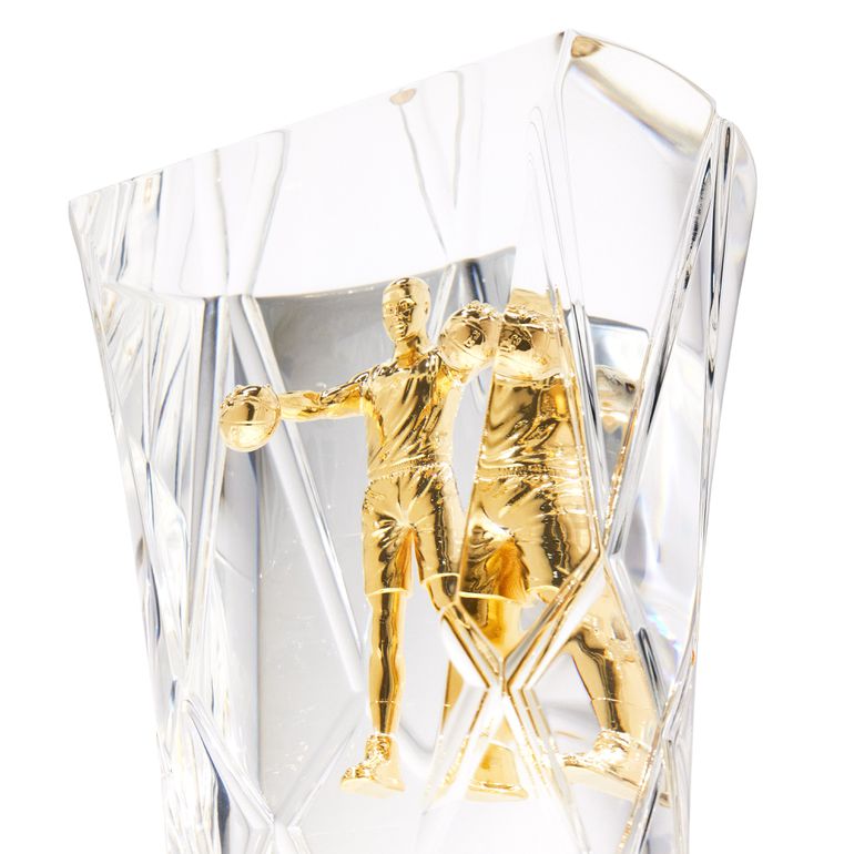 The crystal basketball consists of 23 points, a nod to Jordan’s jersey number. The crystal basketball measures 1.23 inches in diameter, in reference to the singularity of the MVP and Jordan’s standout career.