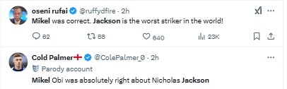 Mikel we are sorry - Nicolas Jackson's miss against Man City forces Chelsea fans to apologize