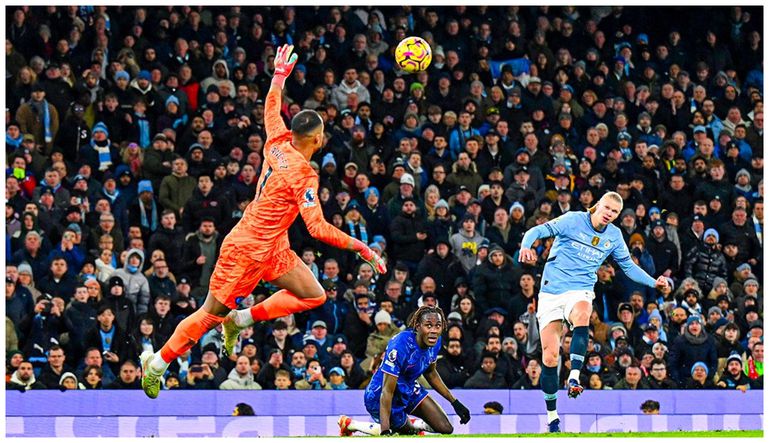 Erling Haaland struck a magnificent goal to make it 2-1 for Chelsea in the 68th minute for his 18th in the Premier League this season