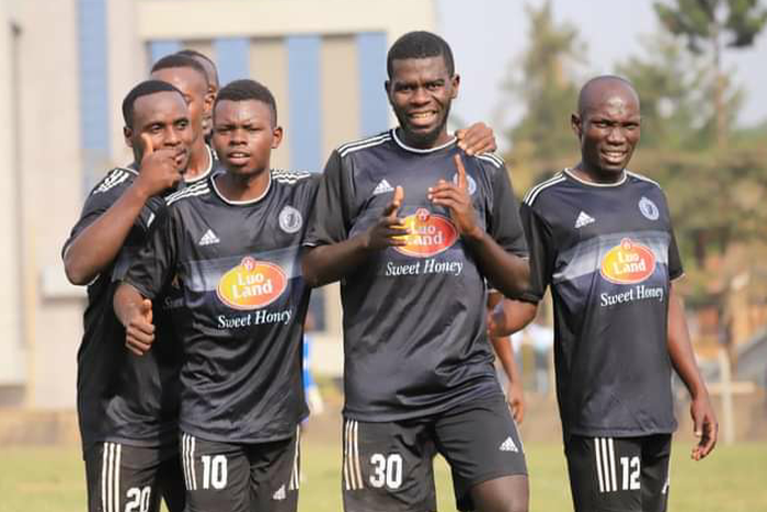 Kisugu United players celebrate their goal against Paidha Black Angels. (COURTSEY PHOTO)
