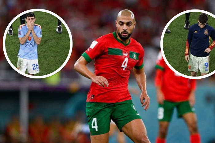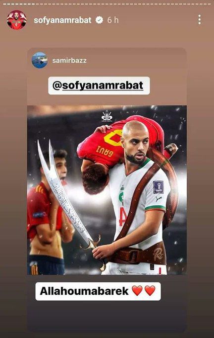 Nordin Amrabat celebrated Morocco's historic win over Spain by posting several Instagram posts trolling the midfield of Spain that included Barcelona's trio of Gavi, Pedri, and Sergio Busquets while representing painting him as larger than life.