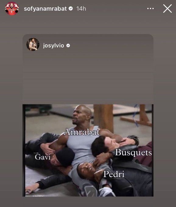 After the game, several accounts shared pictures trolling Spain's all-Barcelona midfield, and Amrabat reposted some of them on his personal Instagram story and became an instant football twitter legend.