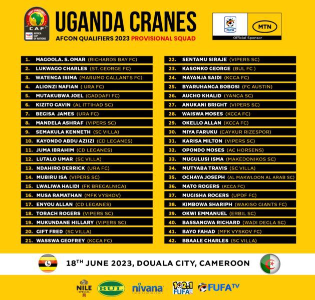 Uganda Cranes head coach Milutin ‘Micho’ Sredojevic has summoned 42 players to prepare for the upcoming 2023 Africa Cup of Nations qualifier against Algeria.