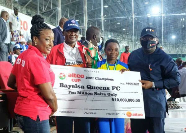 Presentation of cheque to the winner of 2021 Female FA Cup, Bayelsa Queens