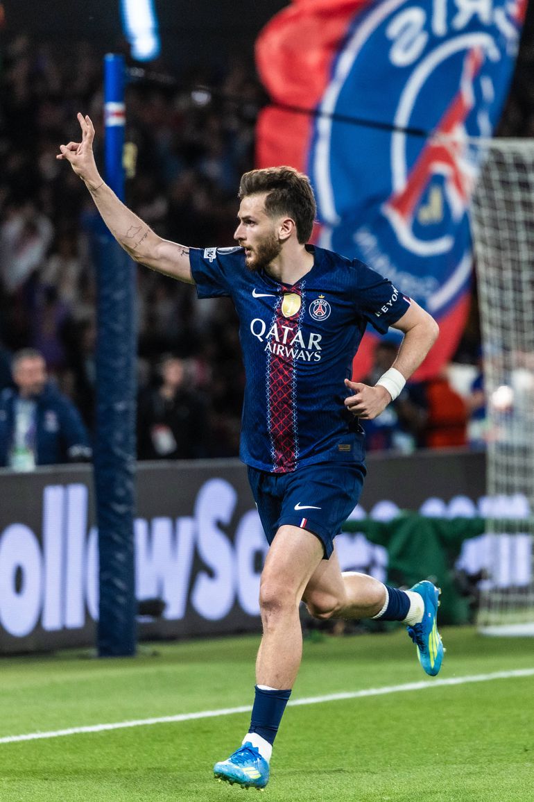 PSG roared back, Khvicha Kvaratskhelia's stunning 24th-minute curler levelled it, Joao Neves headed in from a corner (33') for 2-1.