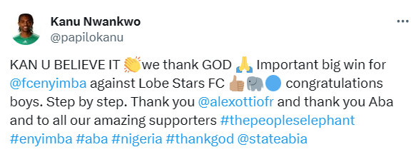 Following the victory, the former Super Eagles playmaker, the Enyimba chairman, took to his social media account to congratulate his team.