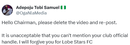 Nigerians spotted this and have taken to the comment sections to blast the former footballer now turned administrator.