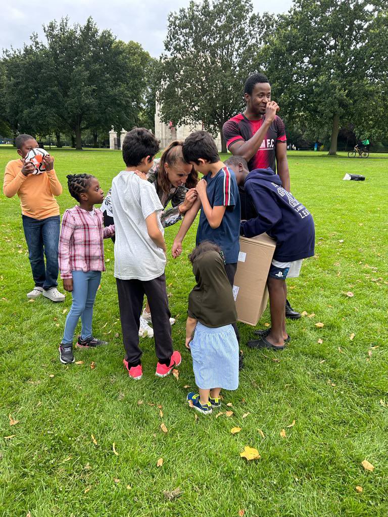 She was spotted handing out free Nike bags and boots at a park in her neighbourhood in Leicester.