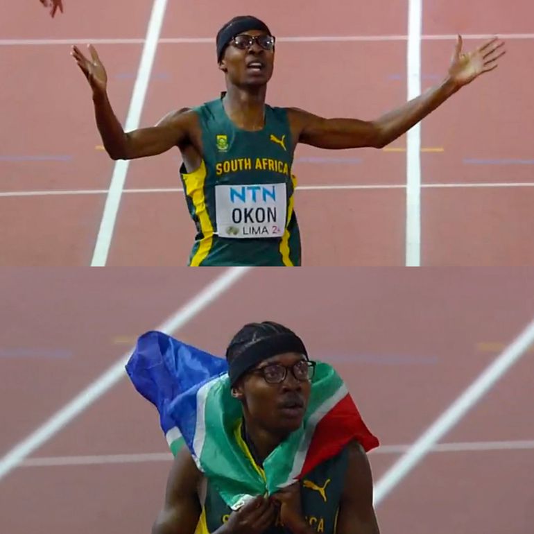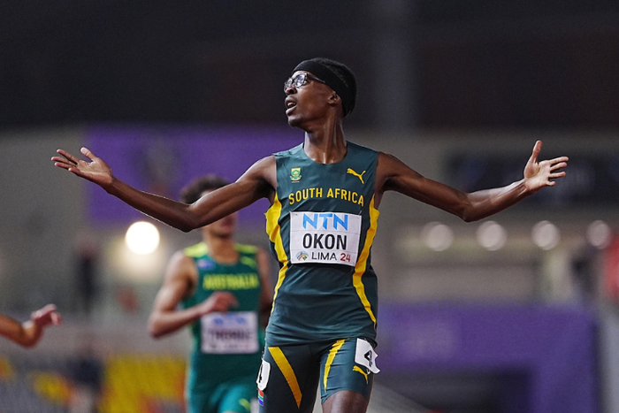 Another track sensation of Nigerian descent has won a global medal for another country. This time, Udeme Okon stormed to the men's 400m gold medal for South Africa at the World U20 Championships in Lima.