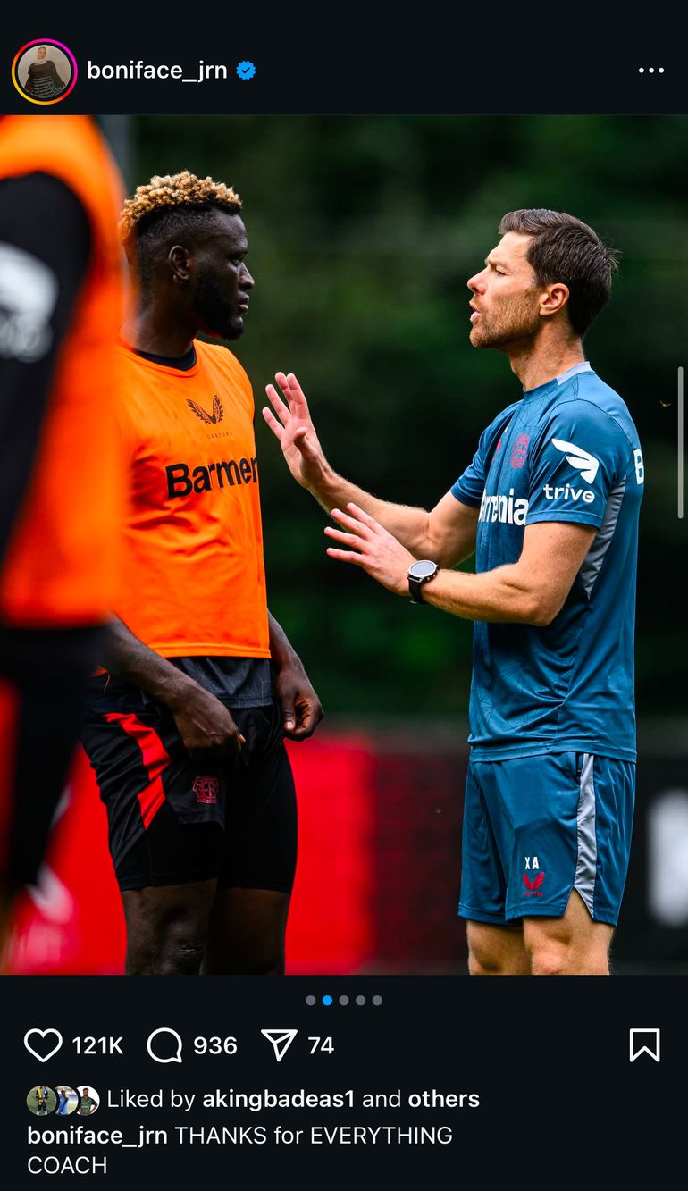 Super Eagles forward Victor Boniface has expressed his gratitude to his departing Bayer Leverkusen manager, Xabi Alonso.