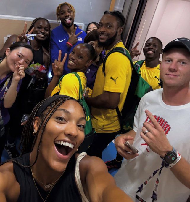 Rivals on the track but pure vibes off it, Jamaican and American athletes showed their spirit of sportsmanship in Tokyo by coming together to take a group picture during the world championships.