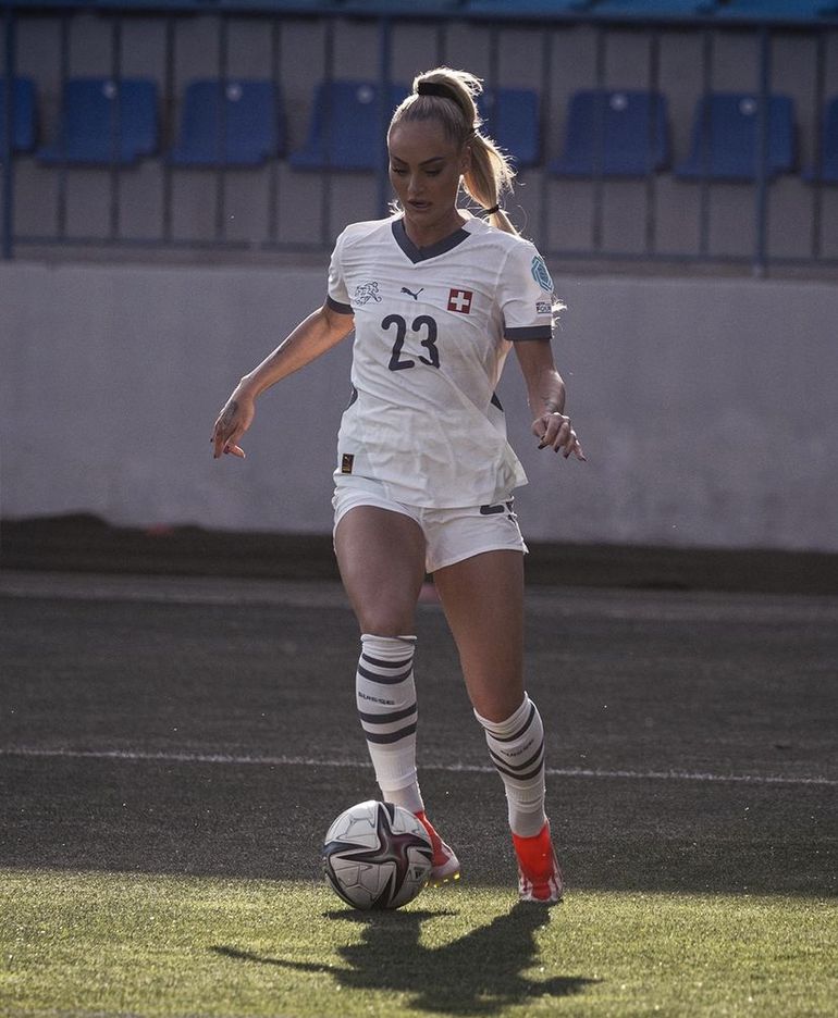 Switzerland women’s football star Alisha Lehmann was in action against Azerbaijan this week.