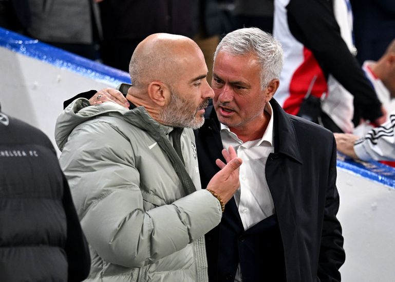 Mourinho watched his Benfica side begin brightly at Stamford Bridge. Dodi Lukebakio’s low strike forced Robert Sanchez into action, the goalkeeper pushing it onto the post.