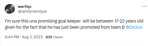 Here are some of the comments and reactions from the fans who quizzed the club about the promotion of the young goalkeeper.