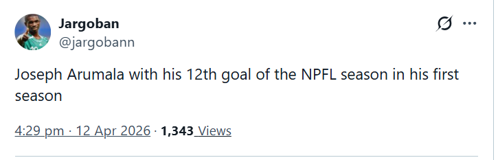 Another supporter declared, simply and emphatically, that Arumala is "NPFL top scorer this season with 12 goals" - as if the number alone made the argument and the debate was already over.