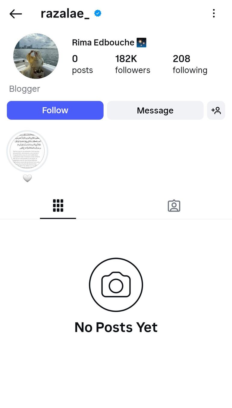 Before the social cleanse, Rima's page had featured glimpses of her family's life and her fashion brand, Razalae.