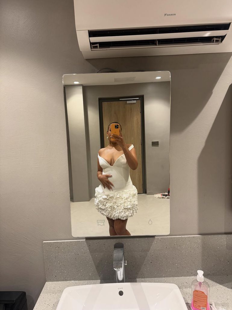 From the photos shared on her Instagram page, Stefanie radiated poise in a white one-shoulder mini dress featuring a sculpted bodice and ruffled hem.