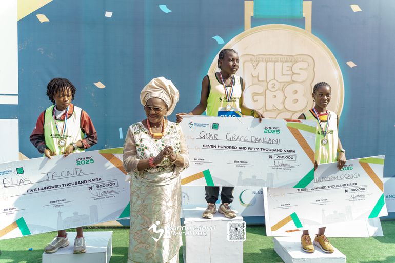 She was closely followed by Elias Jecinta, who finished in 55:39 to earn ₦500,000, while Esther Chigozirim Ogbuga claimed third place in 1:04:23, receiving ₦300,000.