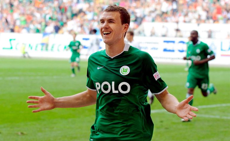 22 year-old Dzeko celebrates a goal for VFL Wolfsburg|courtesy image