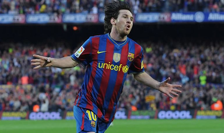 22 year-old Messi celebrates a goal for Barcelona|Courtesy image