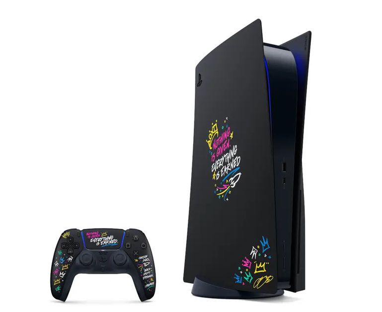On the center of the console cover and on the controller also features the phrase "Nothing is Given. Everything is earned," a quote also associated with James in his illustrious basketball career.