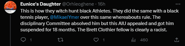 Another Nigerian replied to Rinu, “This is how they witch hunt black Athletes. They did the same with a black tennis player, @MikaelYmer over this same whereabouts rule.