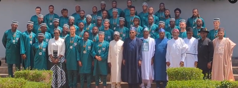 Super Eagles players welcomed home by president Bola Ahmed Tinubu || Image credit: Imago
