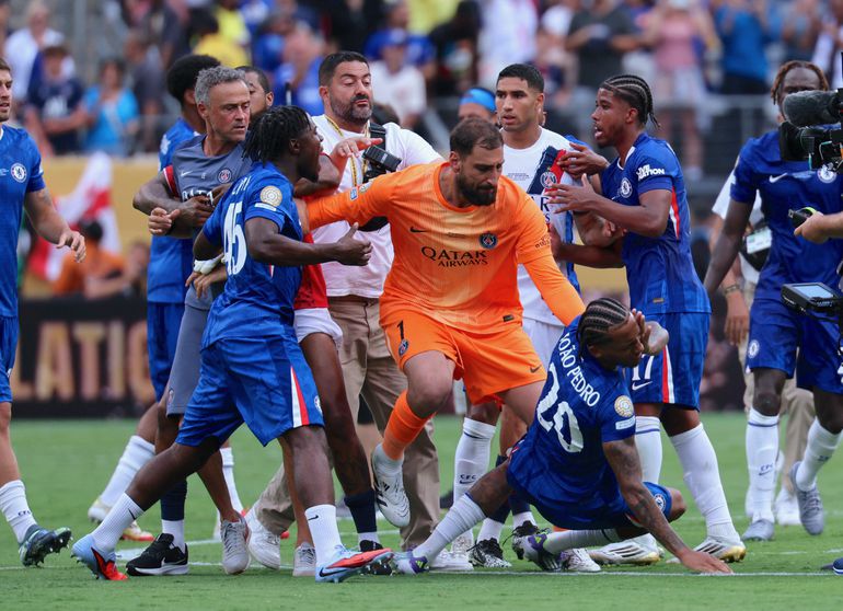 At full-time, a heated on-pitch brawl broke out between players and staff from both teams. In the chaos, PSG coach Luis Enrique was caught on camera slapping Chelsea forward Joao Pedro across the face, an act that sent the player to the ground.