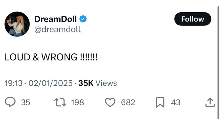 However, DreamDoll took to X (formerly Twitter) to react to the rumours, posting a now-deleted message that read: “LOUD & WRONG.”