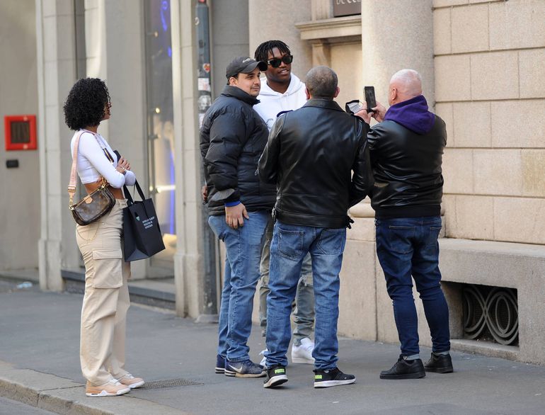 Rafael Leao walks through the streets of Milan with his girlfriend in April 2022/photo via Imago